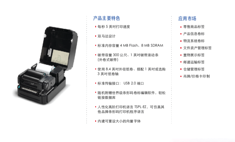 市场上低价商用等级条码列印机不计其数,所有的消费者都期望同时拥有低廉的价格、高档的规格、极限的效能与优异的品质!客户的需求,TSC谨记在心,升级改版全新推出TTP-244 Pro桌上型热感/热转两用条码列印机,列印速度提升25%,达到每秒5英吋,充分满足客户期望!