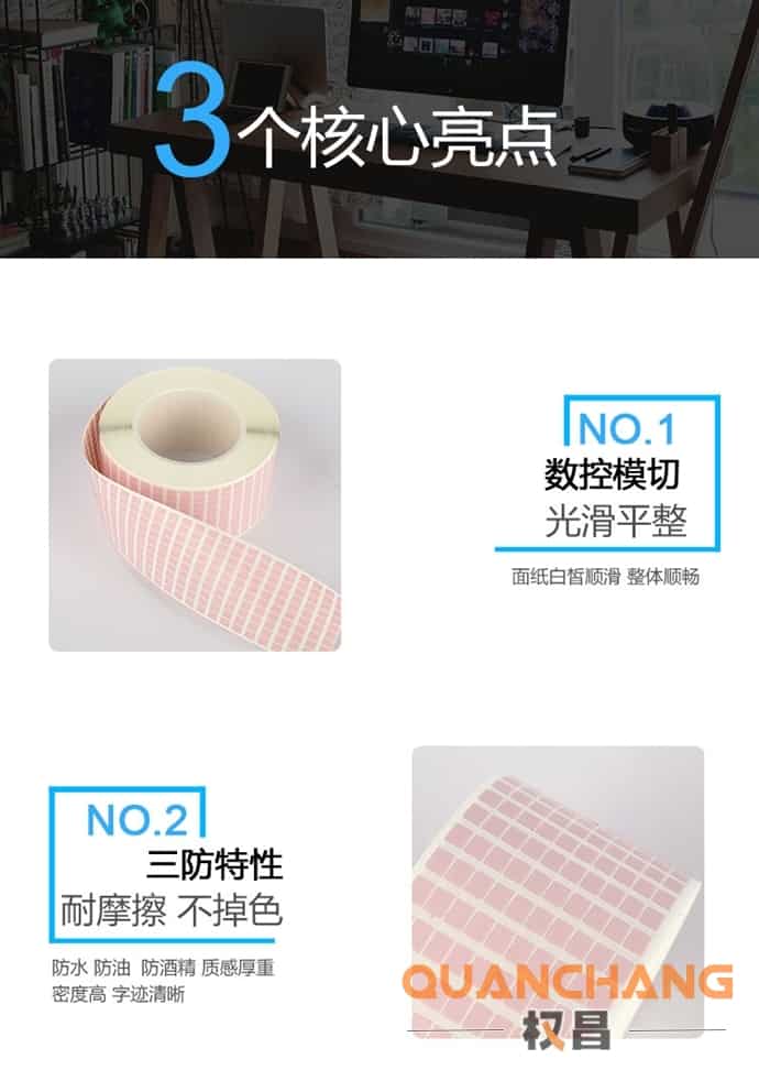 耐高温320度标签具有不脱落、不变形、不变色防火、防油、防水、耐磨抗、耐化学腐蚀等多项优点;压克力系胶,初期力,粘着力佳;主要应用于特殊的工业环境,如:印刷电路板,主机板,ES电脑主板,手机主板,PCB电路在过波峰炉,回流焊,WIFI模块,芯片,智能家具中标识耐高温条码标签。 耐高温标签是以超薄的薄膜为基材,表面白色哑面为热转移打印耐高温涂层。长期耐温性能265度,在390度的高温锡炉中标签变色,不脱落,不变形。 耐高温标签的结构组成