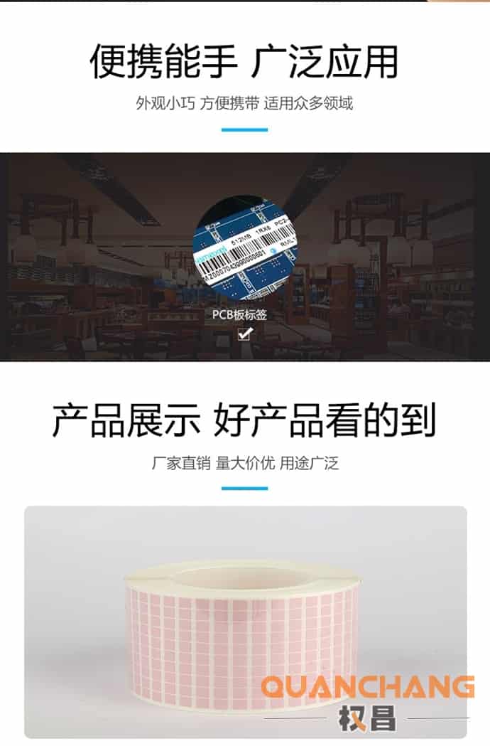 用于PCB线路板SMT表面贴装制造工艺,是印刷线路板(PCB)标识专用标签(常规应用为耐温260℃6分钟),过炉后不起泡、不翘边、不胶落、不发黄、不易被助焊剂中的各类化学物质腐蚀。亦可应用于电子、电气、汽车、航空及其它对材料有较高温度要求的环境;