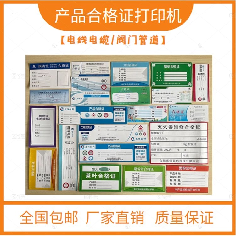 权昌特种打印专业合格证打印机广泛应用:在生产制造、化工、医药、电子电器、机械电子、电线电缆、阀门泵类等制造业企业。